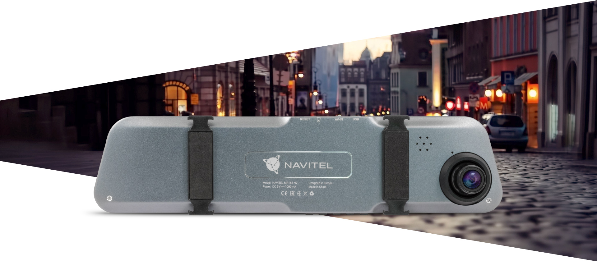 NAVITEL MR155 Night Vision — это умное зеркало заднего вида, оснащённое видеорегистратором. Экран TFT 4,4” позволяет удобно просматривать записанное видео, которое сохраняется в разрешении Full HD 1920 × 1080 (30 кадров в секунду). Угол обзора камеры составляет 140 градусов.