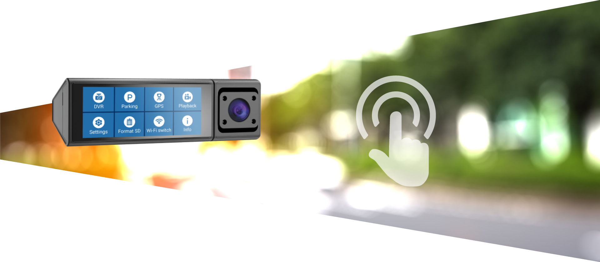Сенсорный экран размером 3,16 дюйма с понятными иконками делает управление простым и удобным. Навигация по меню, изменение настроек, блокировка видео — всё под рукой благодаря дружелюбному интерфейсу.