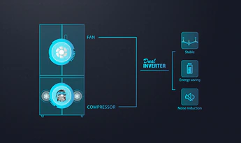 Холодильники, оснащенные технологией Dual Inverter, оснащены инверторным компрессором и двумя вентиляторами. Они разработаны для точного удовлетворения требований к охлаждению: более низкое энергопотребление, сниженный до минимума шум и долговременная работа.
