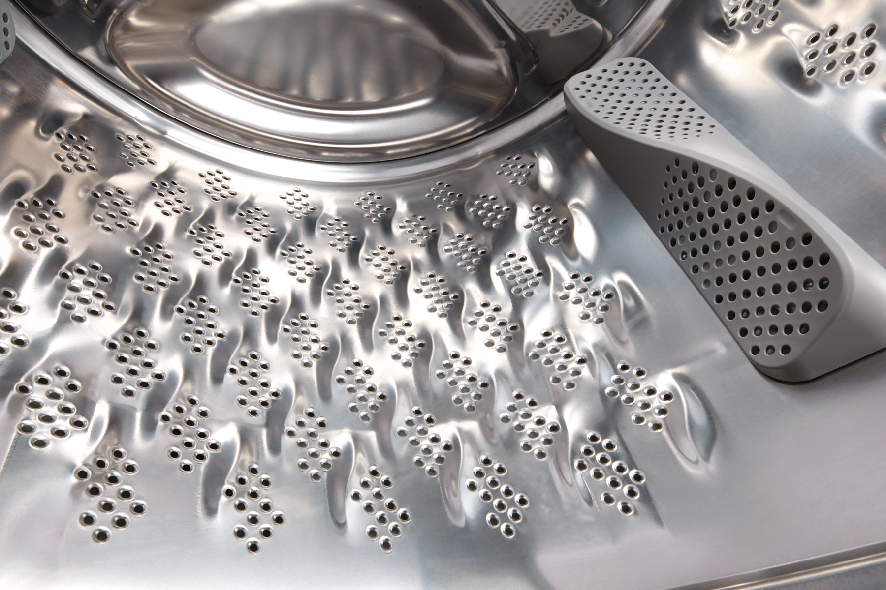 Noua perforație în formă de valuri a tamburului, combinată cu designul special al nervurilor 3D, înmoaie fibrele țesăturii. Acest lucru asigură o îngrijire mai delicată a hainelor, oferă o spălare impecabilă și minimizează formarea cutelor.