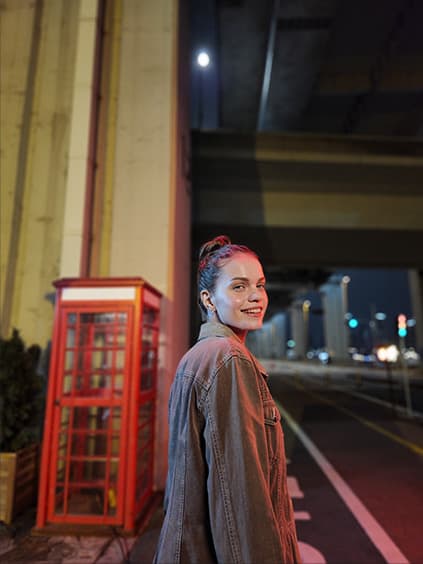 Inspirația nu așteaptă momentul potrivit. Camera detectează iluminarea și comută automat la rata optimă de cadre pe secundă. Dispunând de un procesor de 4 nm cu soluție Super Night care elimină zgomotul din fiecare cadru, puteți înregistra de la răsărit până la apus cu detalii uimitoare.