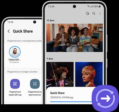 Partajați fotografii, videoclipuri și fișiere între dispozitive printr-o singură atingere folosind Partajare rapidă. Deschideți panoul de partajare, îndreptați telefonul și faceți clic pe „Trimite”.