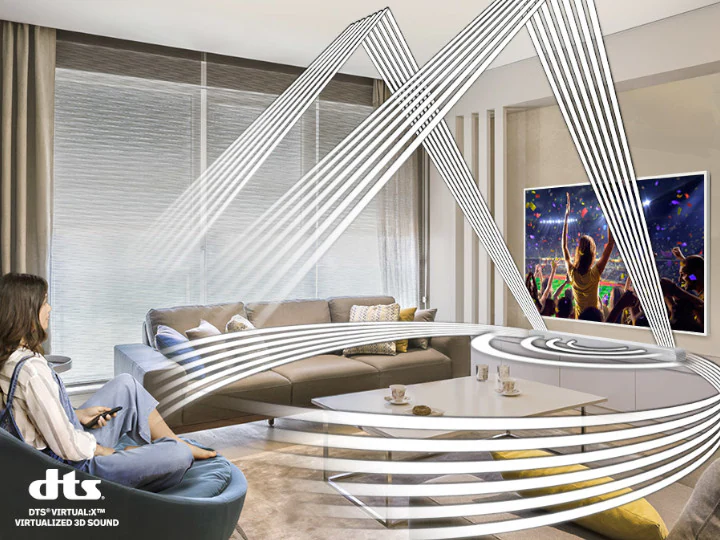 Адаптивный звук анализирует аудиосигнал для обеспечения оптимизированного звучания в зависимости от сцены, помогая вам слышать кристально чистый звук независимо от того, что вы смотрите.