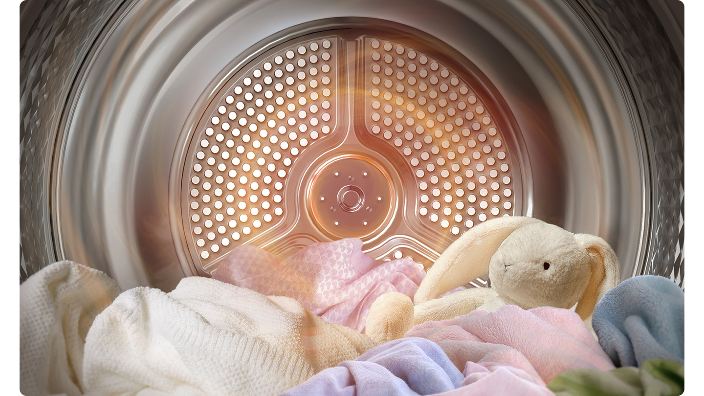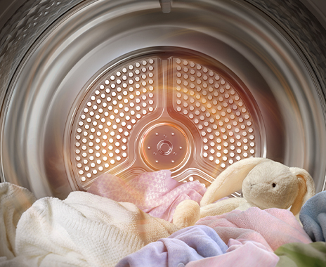 Previne acumularea bacteriilor pe haine, lenjerie și jucării moi pentru copii. Ciclul Hygiene Care curăță igienic atât articolele uscate, cât și cele umede*, fără a influența ciclul de uscare. Temperaturile ridicate din timpul procesului de uscare elimina 99% din bacterii**.