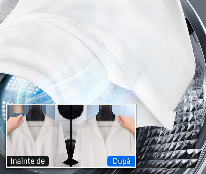 Păstrează hainele uscate în stare perfectă fără a le călca. Trebuie doar să selectezi opțiunea Wrinkle Prevent - după finalizarea ciclului de uscare, tamburul se va roti periodic fără încălzire timp de 180 de minute. Hainele nu stau mult timp într-o singură poziție la temperatură ridicată, de aceea nu se vor șifona.