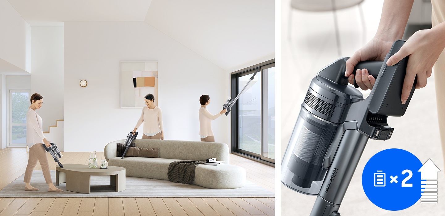 Мощности достаточно, чтобы пропылесосить весь дом за один раз, время работы до 40 минут. Все дело в долговечном съемном аккумуляторе.