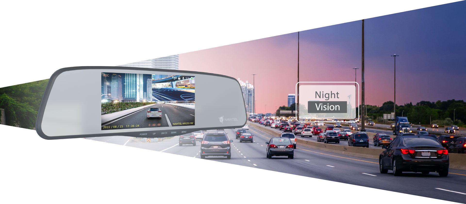 Зеркальный видеорегистратор NAVITEL MR255 NV записывает видео отличного качества в любых условиях освещения — как при ярком солнечном свете, так и в темноте. Чёткое изображение происходящего на дороге обеспечивают сенсор GC2053 с функцией ночного видения и стеклянная оптика с широким углом обзора.