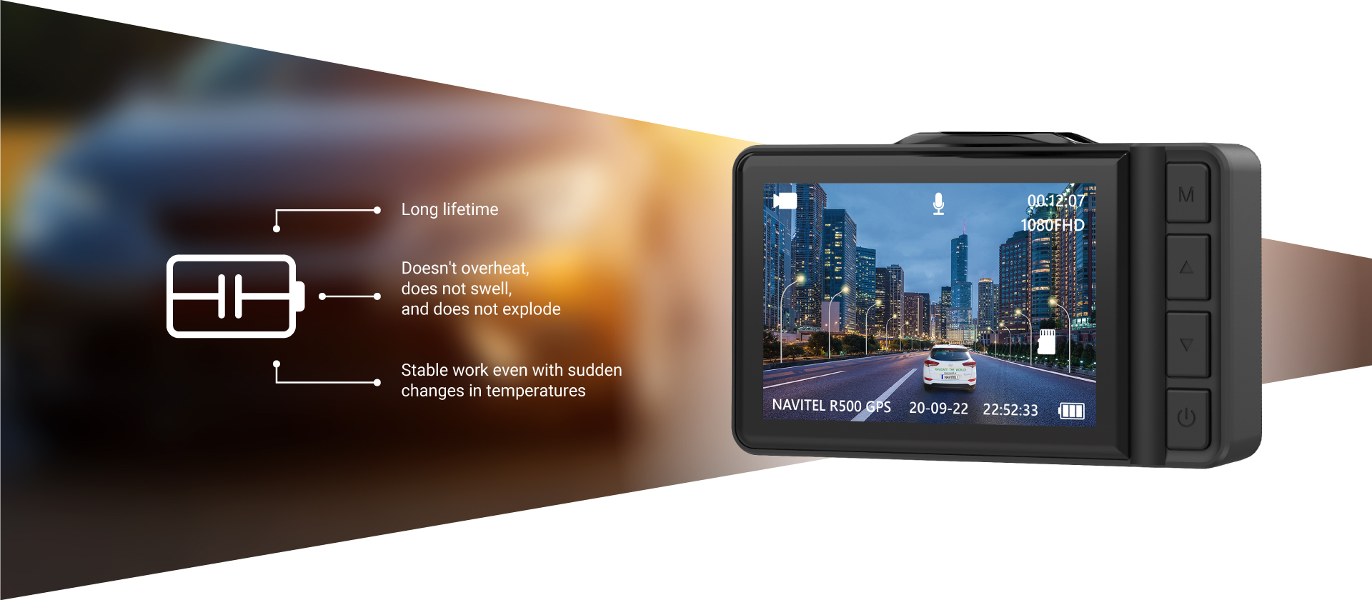 Благодаря установленному суперконденсатору с практически неограниченным сроком службы, можно не беспокоиться о сохранности видеозаписей при внезапном отключении питания, аварии, скачках температуры, перегреве или морозе.