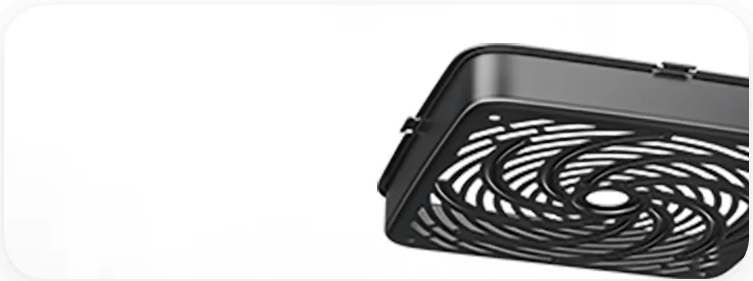 Усовершенствованная конструкция лезвий улучшает распределение воздушного потока и в сочетании с корзиной образует кольцевую систему вентиляционных отверстий. Горячий воздух поступает непосредственно в дно корзины для равномерного нагрева и получения хрустящей корочки, устраняя необходимость переворачивания.