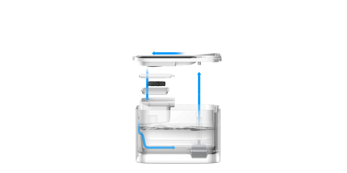 Sistemul de circulație și filtrare unilaterală asigură o purificare atentă, garantând animalelor o băutură mai curată și mai sănătoasă datorită filtrajului multistrat.