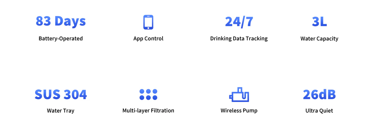 Datorită funcționării pe baterii și a unei autonomii de până la 83 de zile, puteți plasa fântâna pentru animale de companie oriunde în interior, fără a fi limitat de priză.