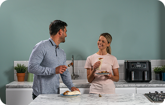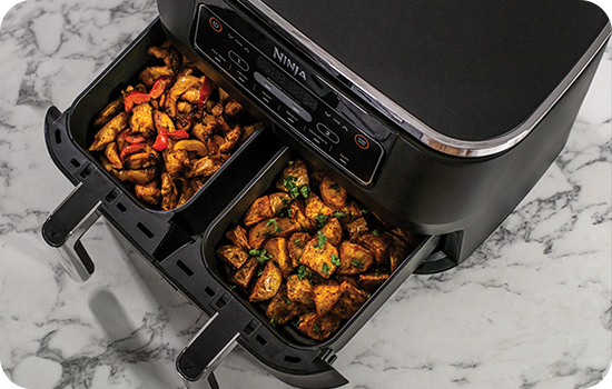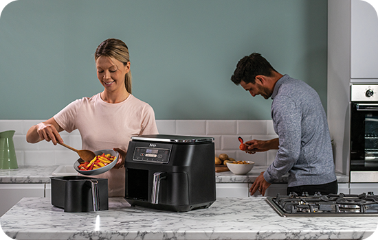 Airfryerul Ninja Foodi Dual Zone AF300EU te ajută să economisești până la 55% din costurile de energie în comparație cu un cuptor clasic. Astfel, gătitul se transformă într-o adevărată plăcere!
