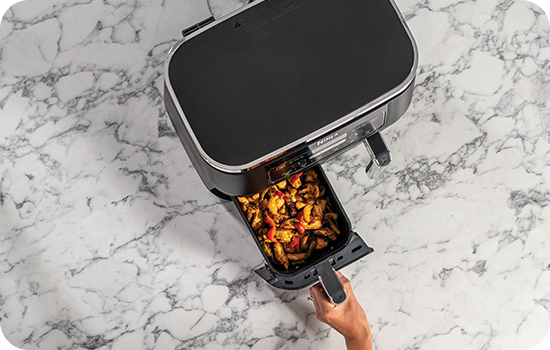 Prin reducerea semnificativă a grăsimilor din preparatele tale, airfryerul Ninja Foodi DualZone AF300EU îți permite să te bucuri de mâncărurile preferate într-un mod mai sănătos. În plus, funcția Max Crisp îți oferă posibilitatea de a prepara alimente congelate rapid, fără a fi necesară decongelarea acestora, păstrând textura crocantă, ceea ce este ideal pentru cei care doresc să se hrănească sănătos, dar nu vor să facă compromisuri la gust. Descoperă toată gama de produse de tip aparat de gătit air fryer și alege-ți produsul preferat.