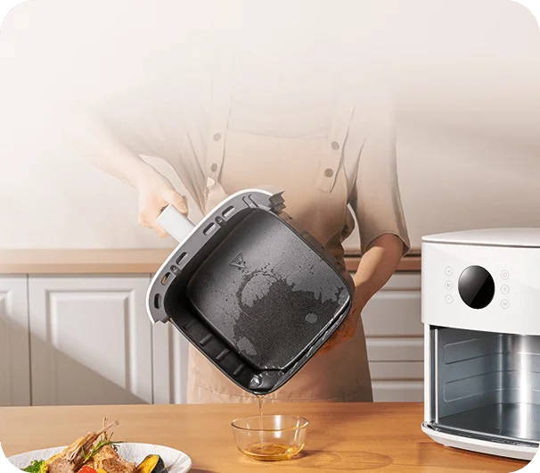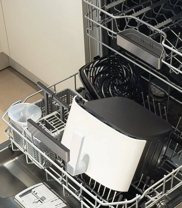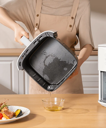 Жарочная поверхность и корзина изготовлены из пищевого* антипригарного материала, что минимизирует прилипание жира. Корзину и аксессуары можно мыть в посудомоечной машине, что упрощает уборку после еды.