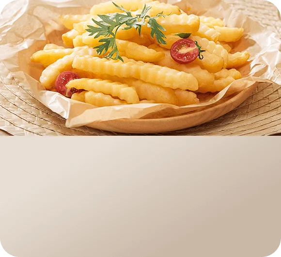Наслаждайтесь более здоровой пищей, запекая при температуре 210 °C для быстрого получения хрустящей корочки. Содержание жира снижается на 88,3% по сравнению с жаркой во фритюре.