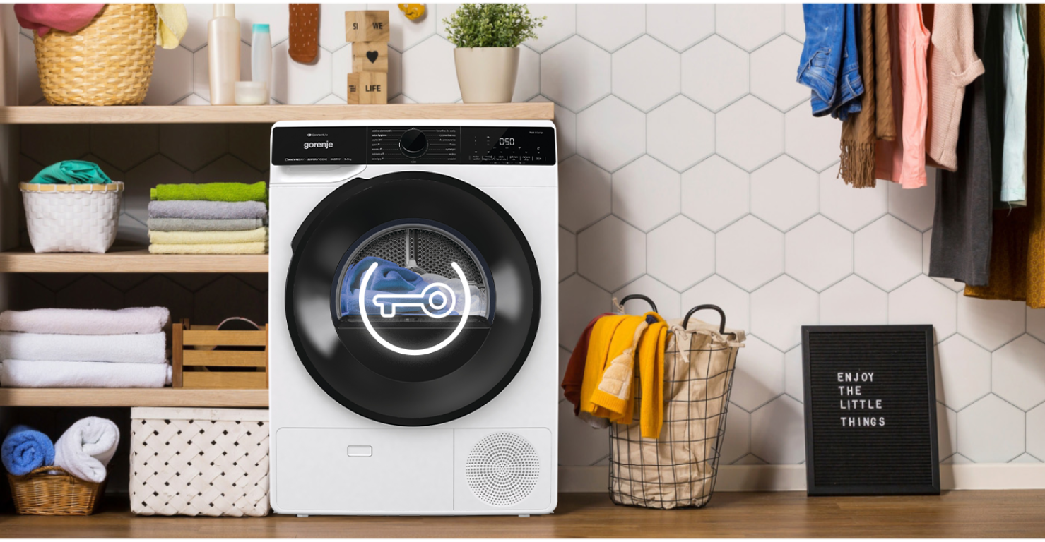 Funcția permite blocarea afișajului, pentru ca copiii să nu poată modifica setările de uscare. Printr-o combinație de butoane, puteți bloca și debloca aparatul în orice moment, fără grija că un copil l-ar putea opri accidental.