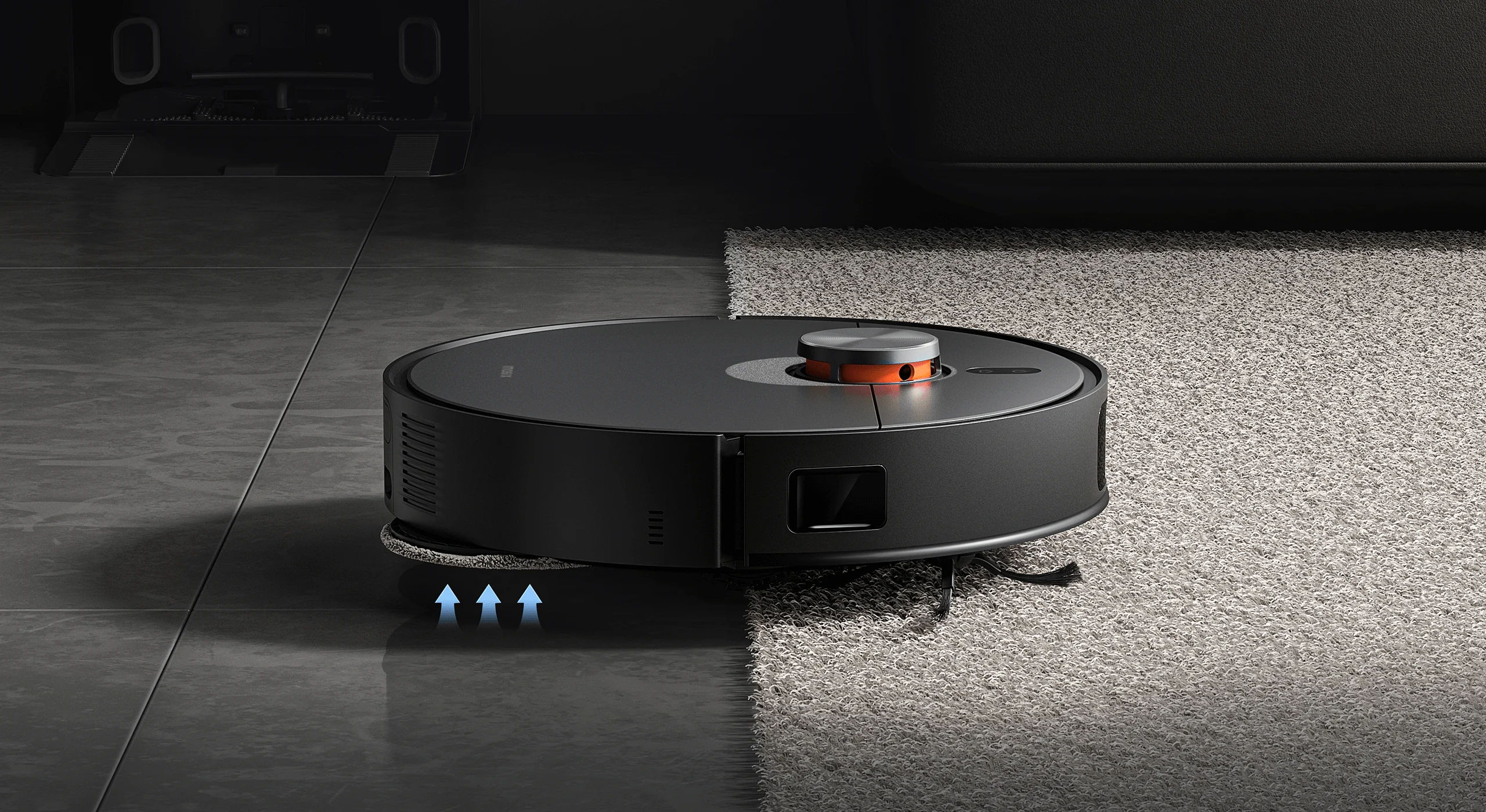 Senzorul cu ultrasunete ridică automat capul mopului cu 10 mm atunci când este detectat un covor. În modul Carpet boost, atunci când mopul este ridicat, acesta activează automat aspirația îmbunătățită pentru a îndepărta eficient părul și praful din adâncul covorului, fără a-l uda.