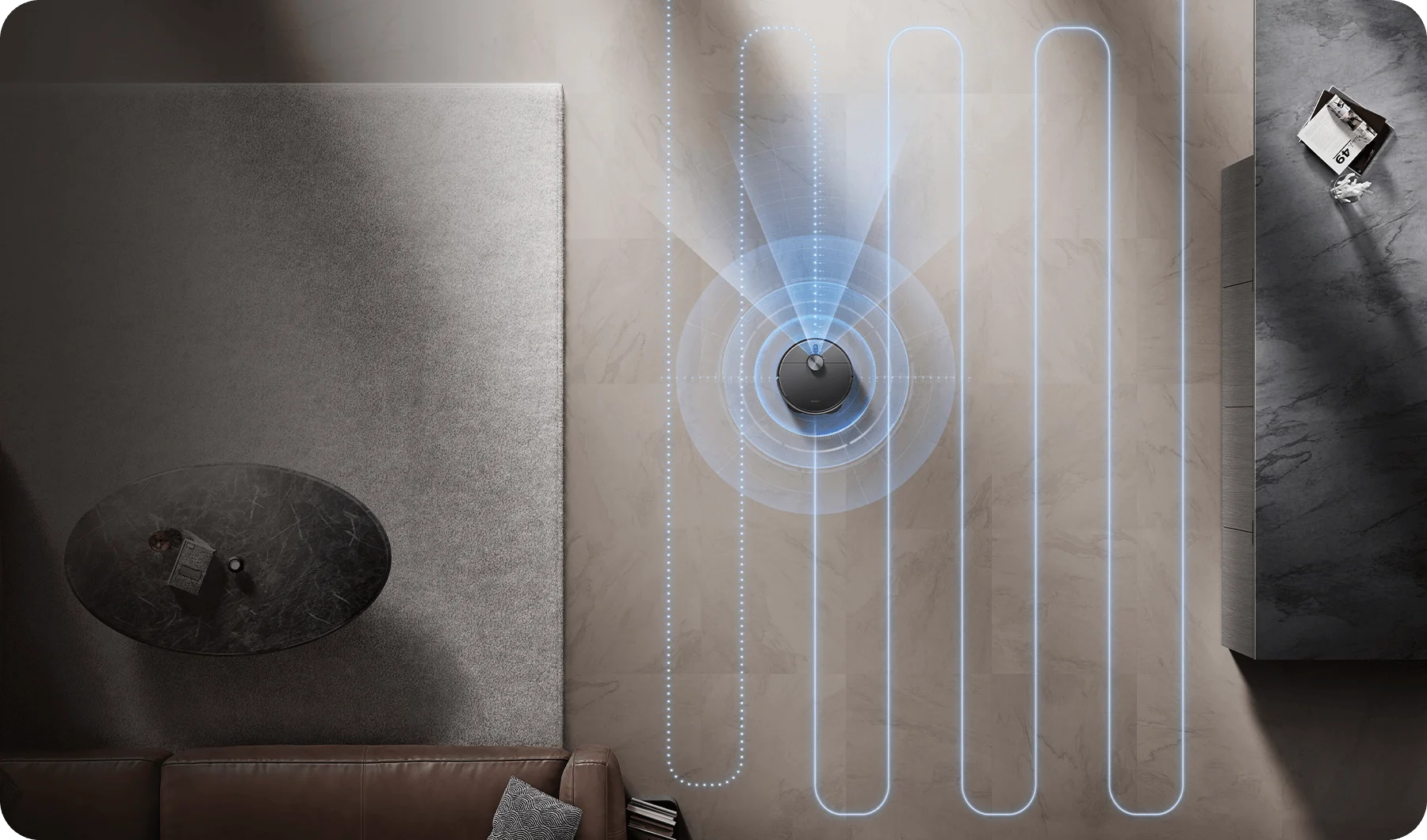 Utilizând tehnologia avansată de navigare cu laser, aspiratorul scanează întregul spațiu interior la 360° pentru a vă cartografia rapid locuința și a planifica cu precizie un traseu de curățare potrivit pentru diferite configurații ale locuinței.