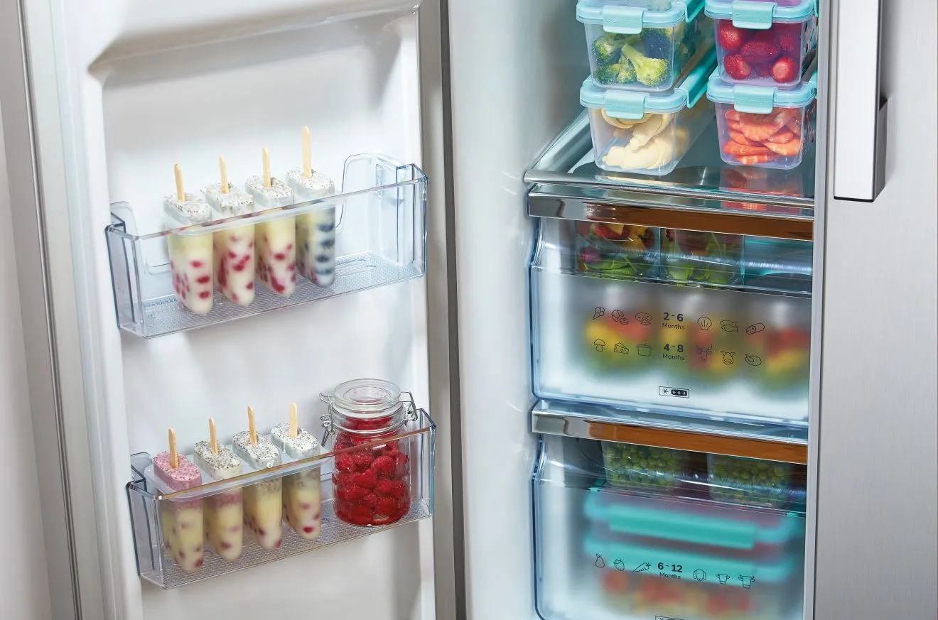 Замораживаете большое количество продуктов? Функция FastFreeze замораживает продукты при температуре -24 °C, сохраняя минеральные вещества и качество. Примерно через 26 часов функция автоматически отключается, и температура в морозильной камере возвращается к исходному значению.