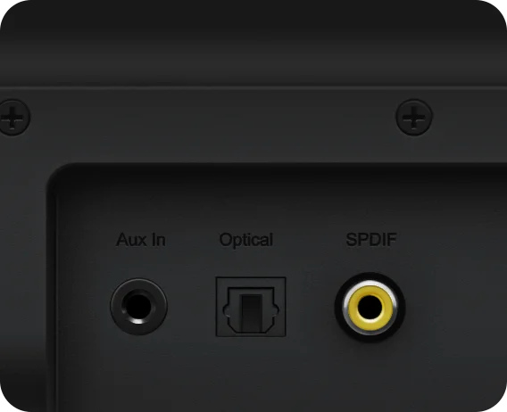 Высококачественный аудиодекодер поддерживает проводные соединения SPDIF, оптический и AUX-порты, поэтому у вас есть множество вариантов подключения. Подключайтесь к телевизору одним кабелем для аккуратной установки и наслаждайтесь потрясающим аудиовизуальным опытом.