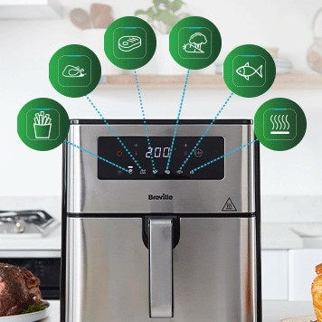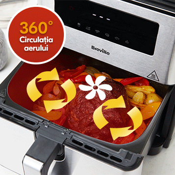 Bucură-te de mese delicioase, pregătite într-un mod sănătos cu airfryerul Breville Halo Air! Cu o capacitate de 9 litri, friteuza cu aer cald este ideală pentru pregătirea meselor în familie. Airfryer-ul oferă un spațiu de gătit cu 65% mai mare* cu doar 7% mai mult spațiu ocupat pe blatul din bucătărie.
