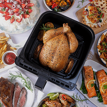 Airfryerul se încălzește rapid până la 200° C și nu necesită preîncălzire. Dispune de tehnologie Halo Air, ce asigură o gătire uniformă, de fiecare dată.