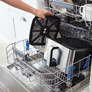 Coșul pentru prăjire și tăvița sunt compatibile cu mașina de spălat vase.