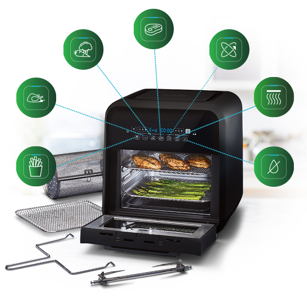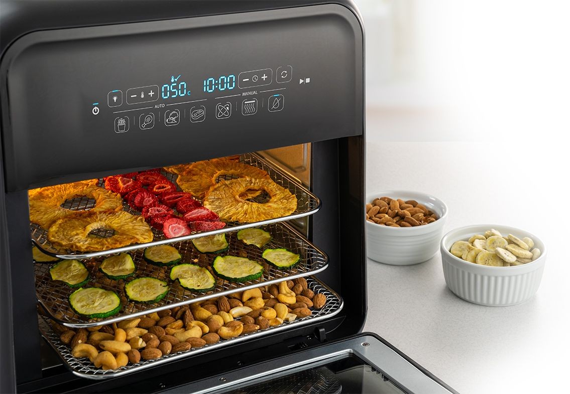 Cartofi perfect prăjiți fără ulei, pui întreg la rotisor, fructe și legume deshidratate și preparate coapte uniform!