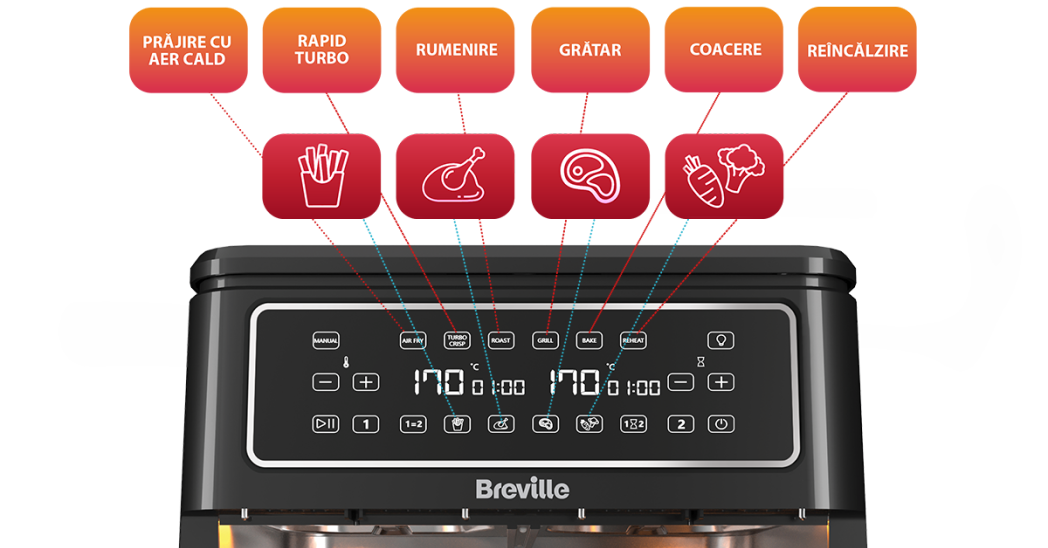 Готовьте несколько рецептов одновременно в двойной фритюрнице Breville Halo Flexi Digital 11L!