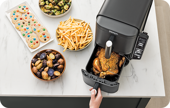 Gătitul devine mai simplu și eficient cu Ninja Double Stack XL Smart SL451EU, chiar și pentru familiile mari sau ocazii speciale. Cu un design inovator ce include două sertare suprapuse, Ninja Double Stack permite gătirea a până la patru preparate diferite simultan, fiind perfect pentru mesele variate și bogate. Tehnologia sa avansată asigură rezultate perfecte, crocante și gatite uniform, indiferent de tipul de mâncare pregătit. Acest aspect îl face ideal pentru mesele în familie, unde diversitatea este esențială, transformând fiecare ocazie într-o experiență culinară memorabilă.