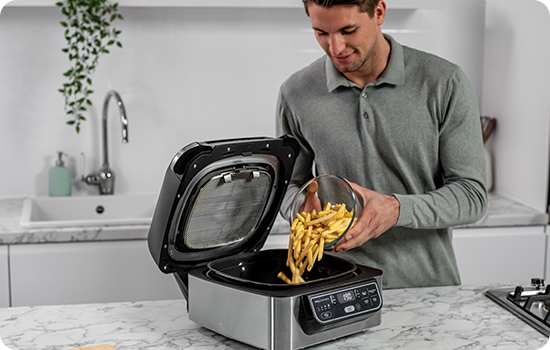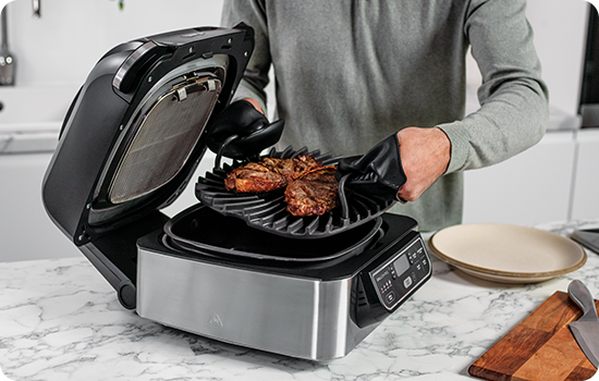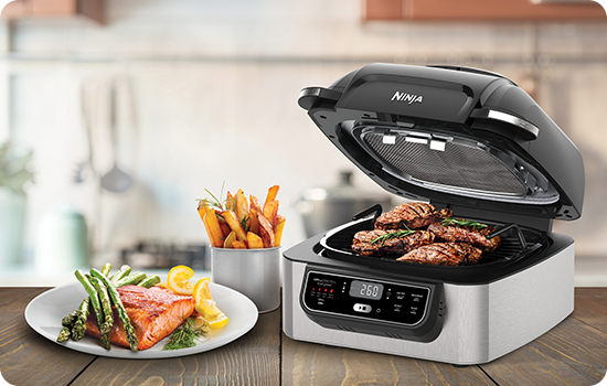 Fiecare grătar Ninja Foodi Airgrill vine cu un ghid de rețete, facilitând utilizarea aparatelor și explorarea unor rețete noi, delicioase, create special pentru acest grătar cu funcție de airfryer. Pentru cele mai savuroase mese îți vor fi de folos și accesoriile incluse, compatibile cu mașina de spălat vase: placă de grătar cu strat ceramic, oala de gătit, crisper plate, sistemul de proteție împotriva stropirii și peria pentru curățare.