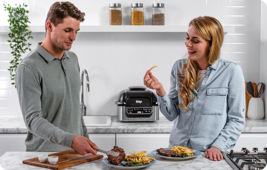 Datorită plăcii de gătit cu control de temperatură, Ninja Foodi te ajută să gătești rapid, oferind o experiență de gătit fără fum, perfectă pentru apartamente. Poți găti atât carnea cât și garnitura sau chiar snack-uri rapide și sănătoase, fără să mai fie nevoie să aprinzi focul.