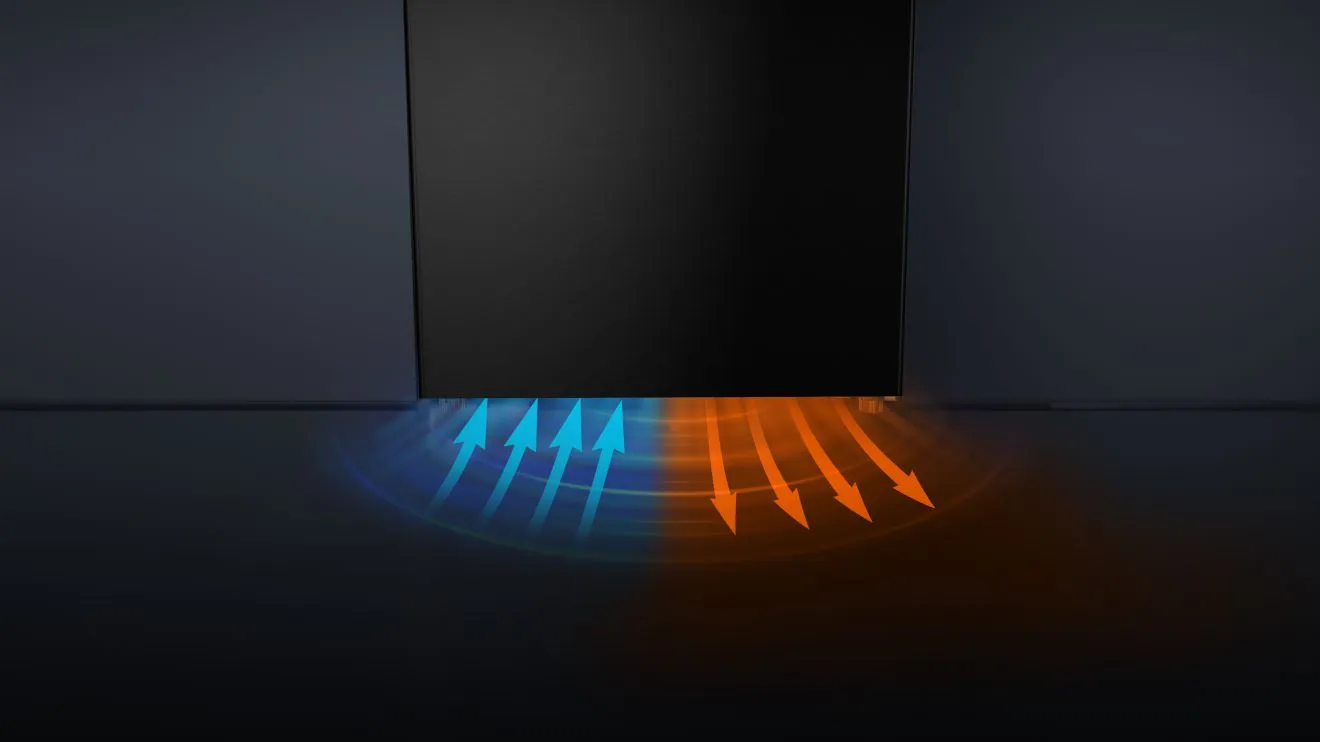 Компания Hisense представила новую систему охлаждения снизу, которая, в отличие от традиционных моделей с задней вентиляцией, обеспечивает вентиляцию спереди. Она обеспечивает забор холодного воздуха и циркуляцию теплого. Эта новая система вентиляции вносит свой вклад в общее предложение KitchenFit, сокращая необходимое пространство сзади.