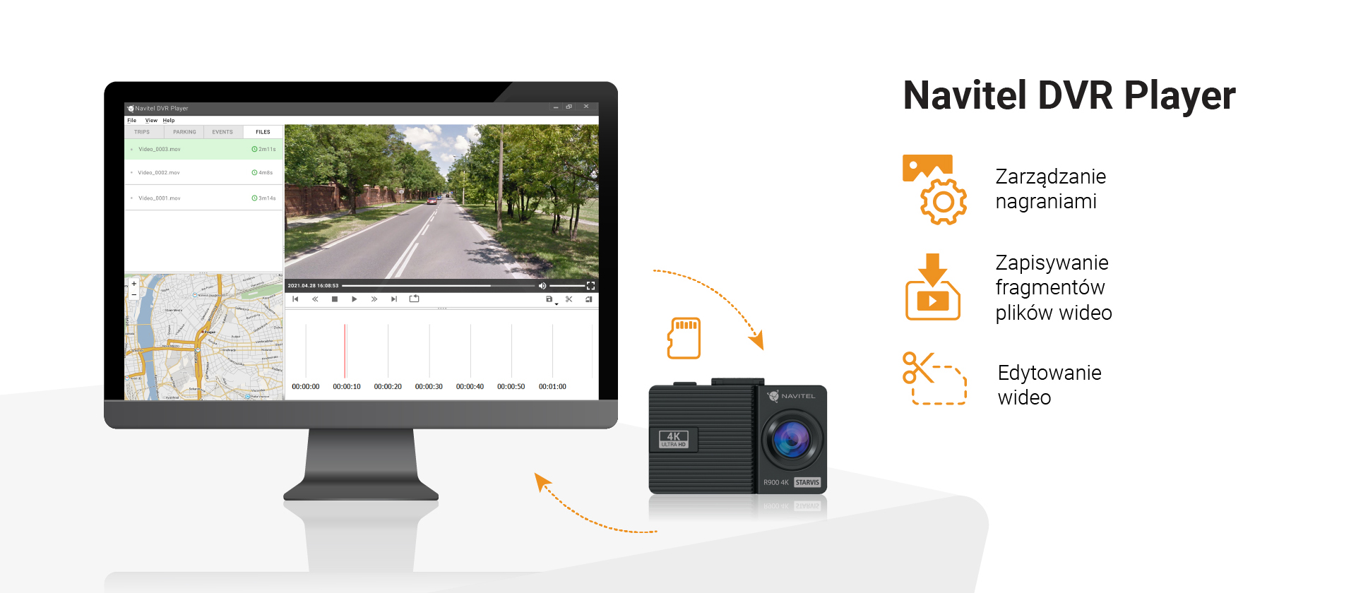 Все записи сохраняются на карты памяти microSD объёмом до 256 ГБ. Благодаря встроенной функции G-сенсора, важные видеозаписи автоматически защищаются от перезаписи. В случае резкого ускорения, торможения, поворота или столкновения, фрагмент видео помечается как аварийный и сохраняется в защищённой папке.