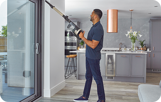 Bateria detașabilă oferă o autonomie de până la 60 de minute, astfel încât să poți curăța întreaga locuință fără griji. **în modul Eco, utilizând un accesoriu nemotorizat