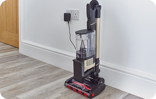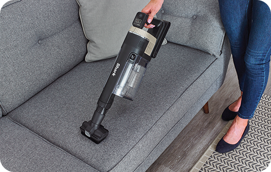 Când ai terminat curățenia, aspiratorul Shark Stratos Pet poate fi pliat pentru a ocupa un spațiu minim de depozitare, fără a necesita un loc special dedicat.