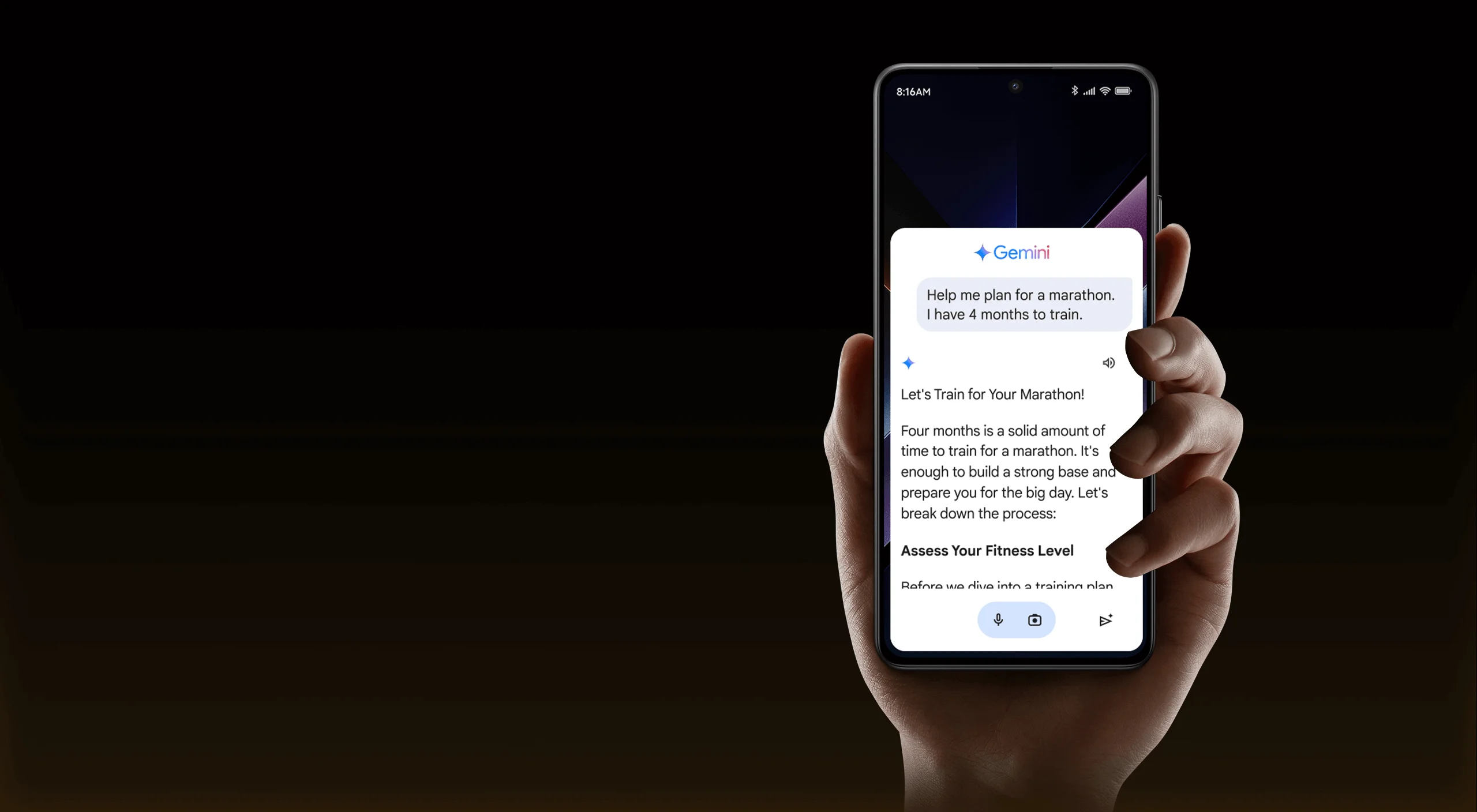 Общайтесь с Gemini, вашим помощником с искусственным интеллектом от Google. Получите помощь в написании текстов, мозговом штурме, обучении и многом другом.