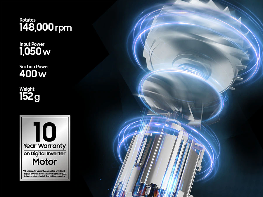 Cel mai puternic aspirator cu baterie din lume. Motorul HexaJet generează o putere de aspirație de până la 400 W în modul Jet.
