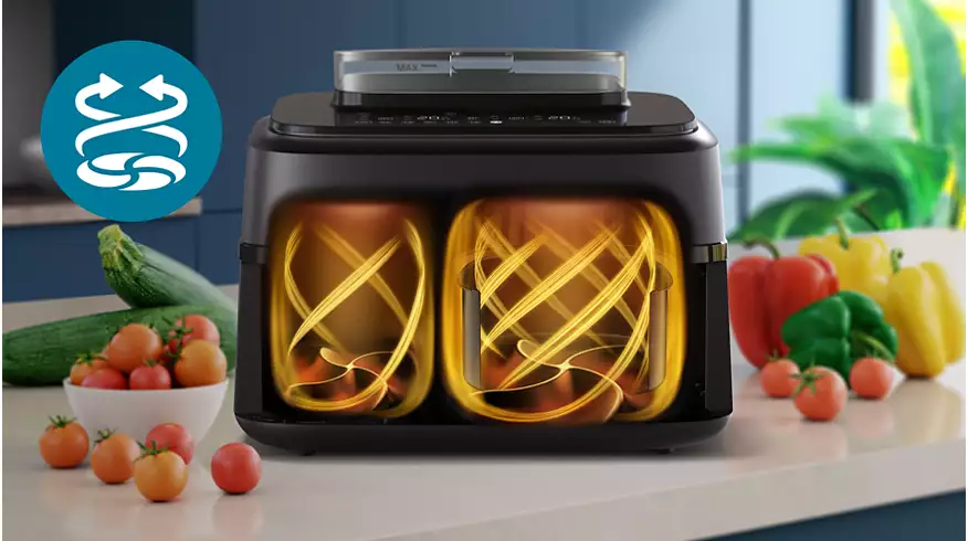Технология RapidAir Plus с уникальной звездообразной формой обеспечивает быстрое движение горячего воздуха вокруг и внутри продуктов, гарантируя равномерное приготовление снаружи и внутри для создания вкусных домашних блюд.