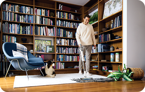 Bateria detașabilă oferă o autonomie de până la 50 de minute, astfel încât să poți curăța întreaga locuință fără griji. **în modul Eco, utilizând un accesoriu nemotorizat