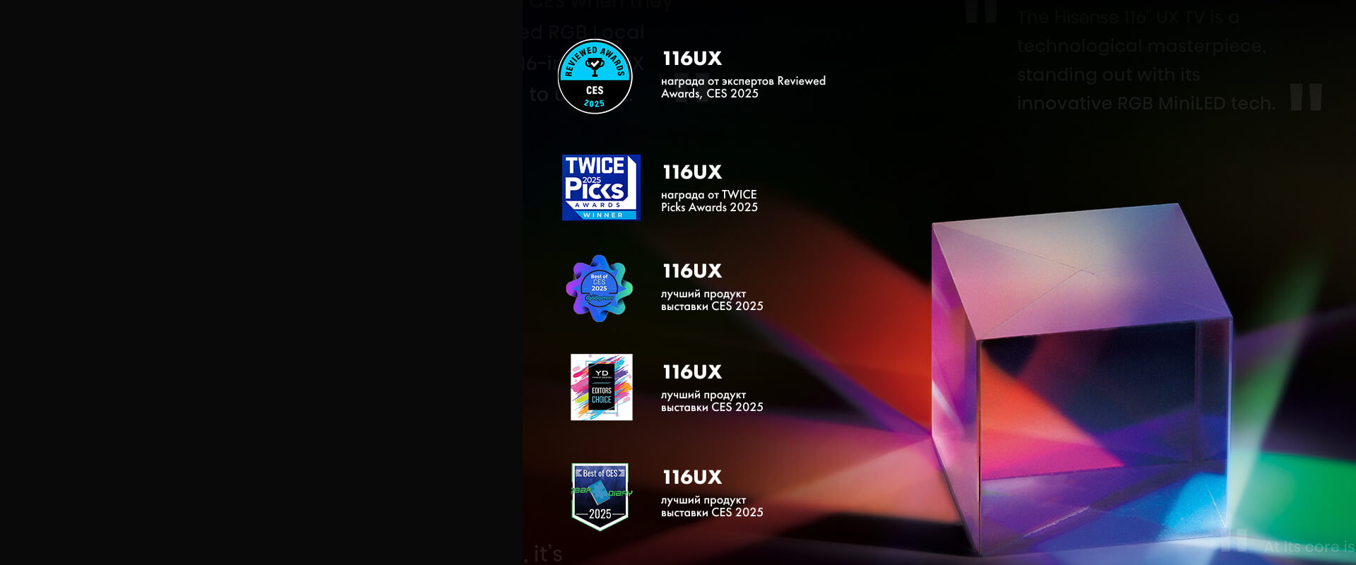 Представленный на выставке CES 2025 телевизор получил высокую оценку СМИ и экспертов благодаря потрясающей цветопередаче. Яркие, сочные и реалистичные цвета демонстрируют, что в технологиях отображения наступила новая эра.