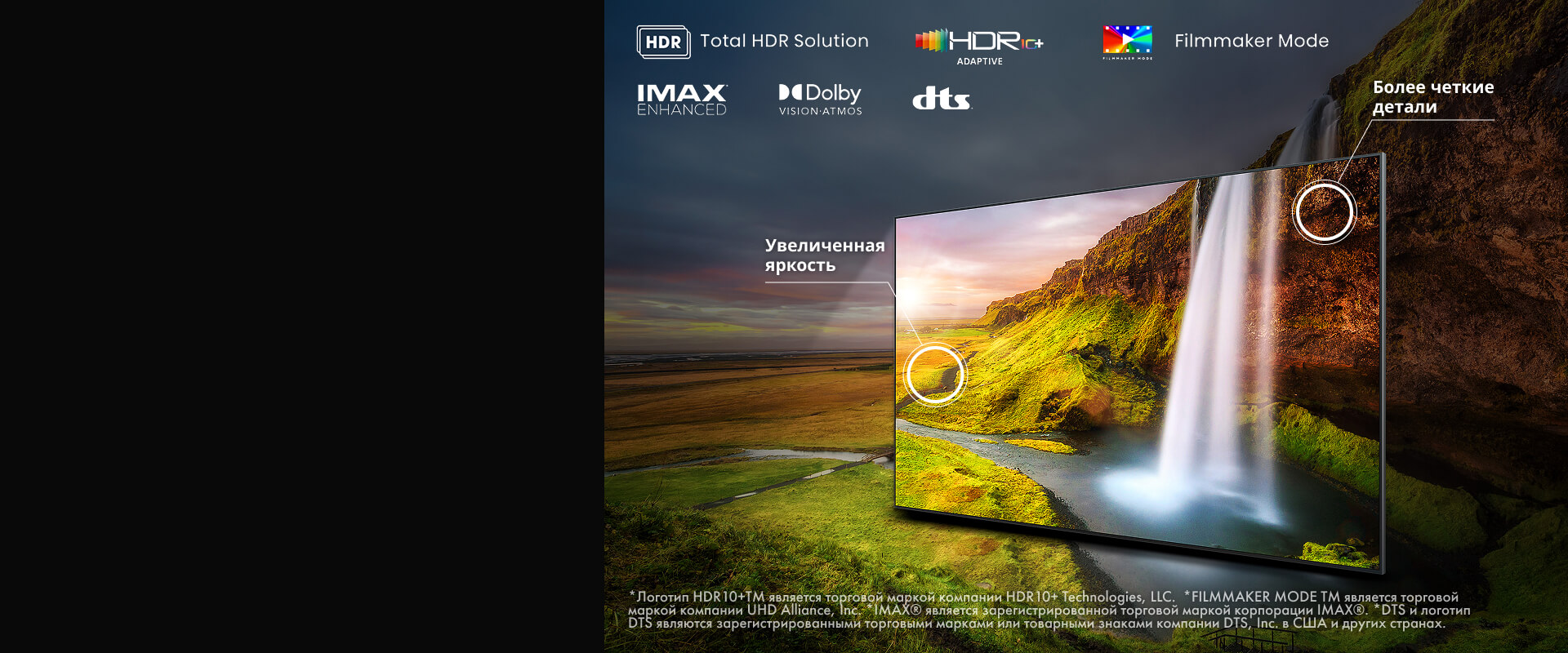 Технология Total Ambient Adaptive анализирует освещение в комнате и автоматически настраивает картинку — будь то яркий солнечный день или уютный вечер при свете ламп. Благодаря поддержке всех форматов HDR вы получаете оптимальное качество изображения в любой обстановке.