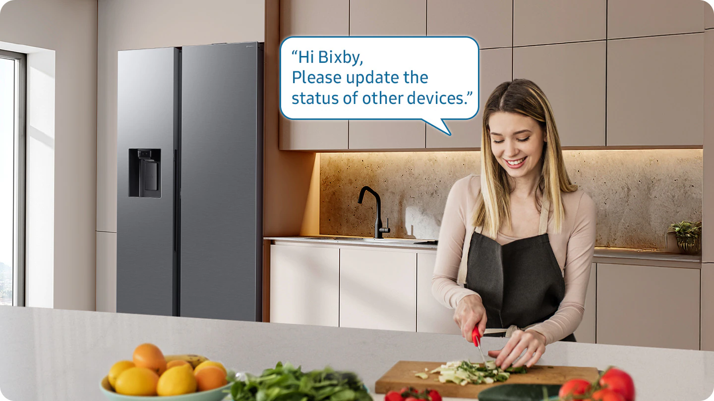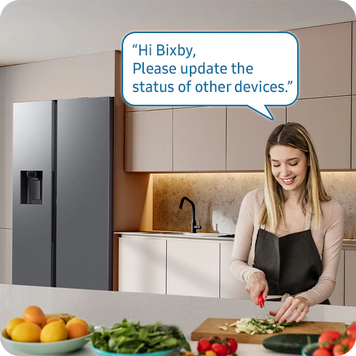 Наслаждайтесь удобным способом управления холодильником. Samsung Bixby встроен прямо в устройство, позволяя вам настраивать параметры, выбирать функции и задавать вопросы. Благодаря последнему обновлению, он теперь может учитывать контекст предыдущих разговоров и распознавать несколько команд в одном предложении.