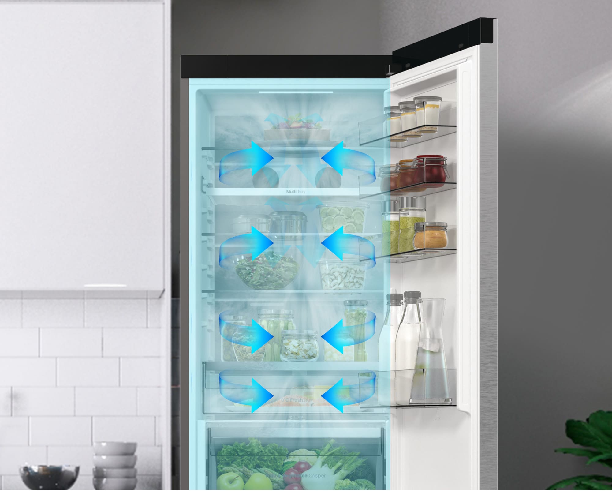 Технология обеспечивает равномерное распределение холода, поддерживая оптимальную температуру в каждом уголке. Идеально сохраняет любые продукты.