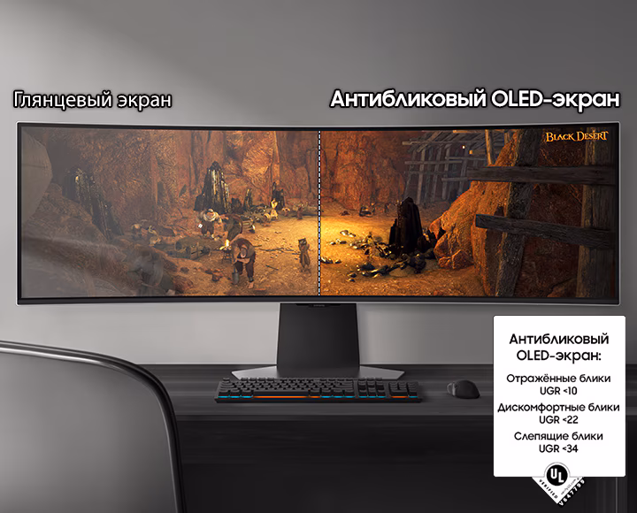 Datorită tehnologiei OLED, te poți bucura de o paletă de culori mai largă și de imagini vii. Rezoluția Dual QHD (5120 x 1440) asigură o claritate superioară a imaginii.