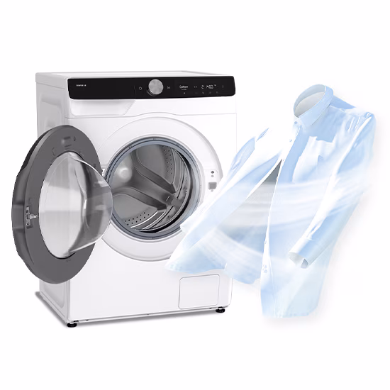 Наслаждайтесь более эффективной стиркой с AI Ecobubble™. Технология создает пузырьки, которые удаляют на 24% больше грязи даже при низких температурах, экономя 70% энергии и обеспечивая лучший уход за тканью на 45,5%. Она также определяет тип ткани и оптимизирует количество пузырьков, время стирки, температуру и скорость отжима.