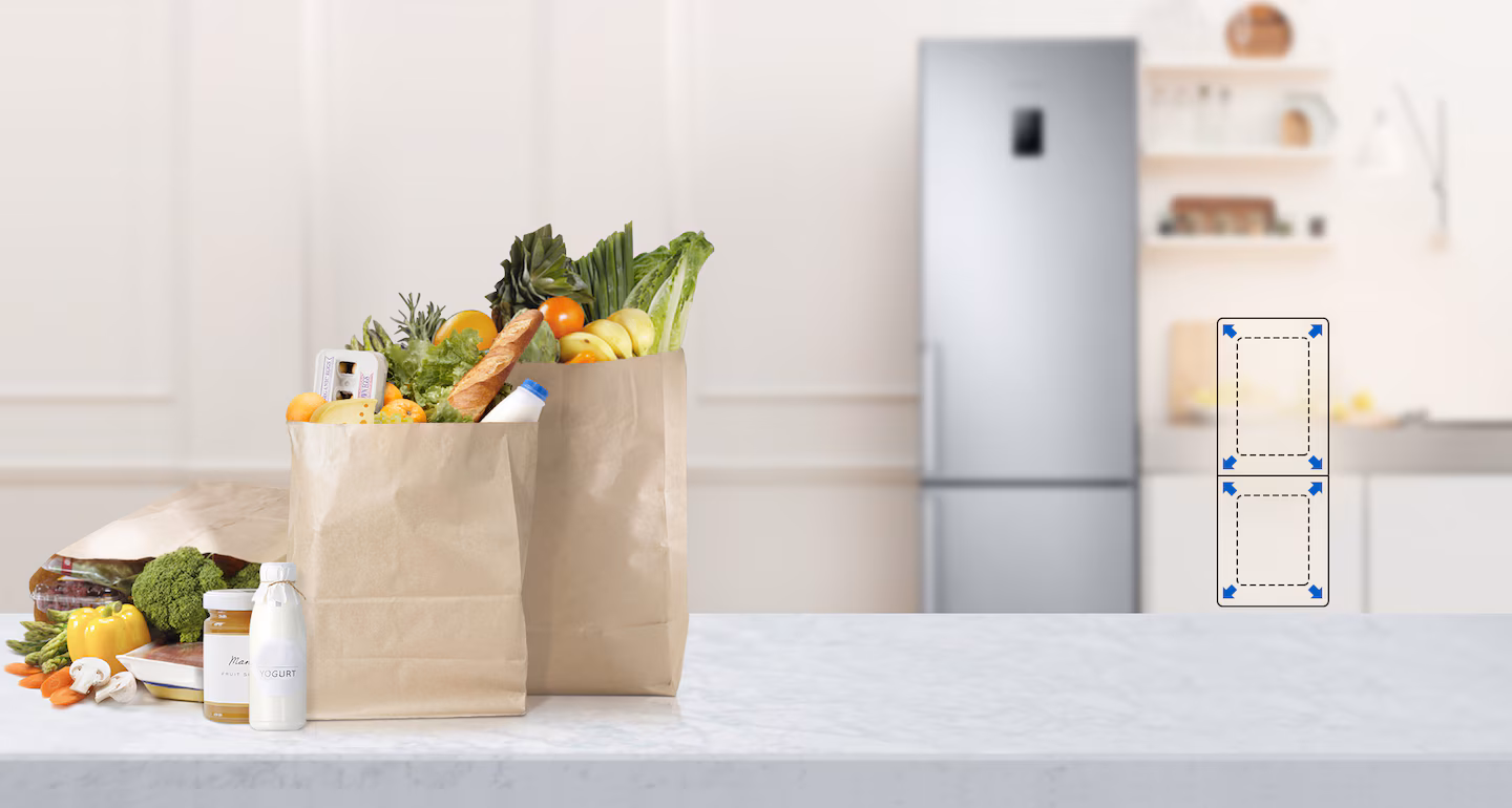 Păstrează mai multe alimente în frigider. Cu Izolația de înaltă eficiență a tehnologiei SpaceMax™ pereții sunt mult mai subțiri. Astfel, nu mai trebuie să vă faceți griji ca nu vor încăpea toate alimentele.