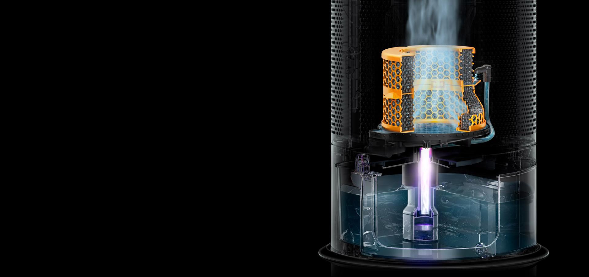 Tehnologia Dyson Air Multiplier™ amestecă și distribuie aerul purificat și umidificat în întreaga încăpere.