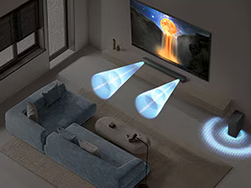 Tehnologiile Dolby Audio și DTS Virtual:X creează un sunet 3D volumetric cu efect de înălțime, datorită tehnologiilor de procesare audio, fără a fi nevoie de difuzoare orientate în sus.