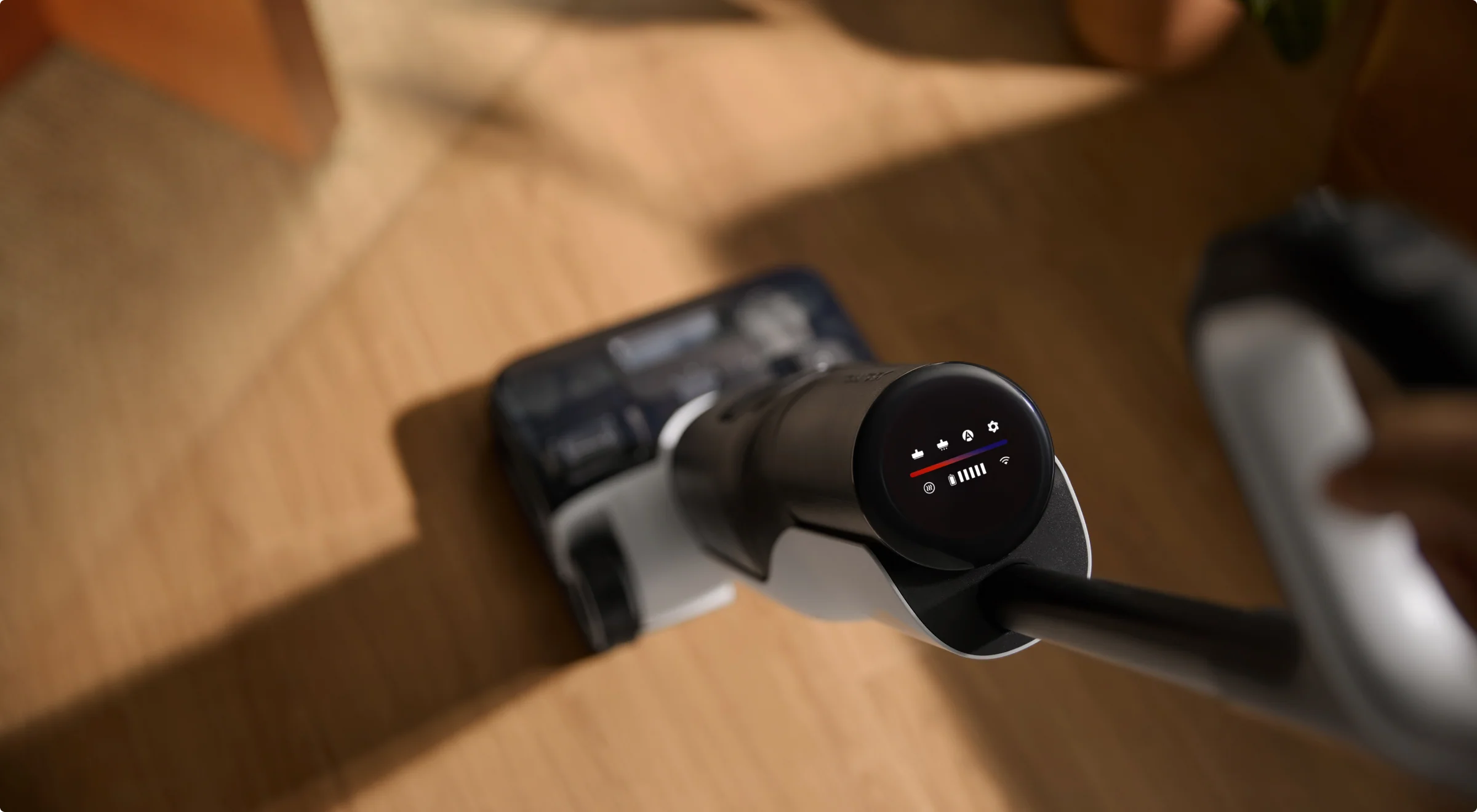Остаётся включенным даже в вертикальном положении — идеально подходит для преодоления порогов или уборки труднодоступных мест, например, лестниц. Никаких отключений, никаких перезагрузок — только безупречная, непрерывная уборка.
